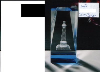 LASER CUT CRYSTAL BLOCK WITH LIGHTHOUSE